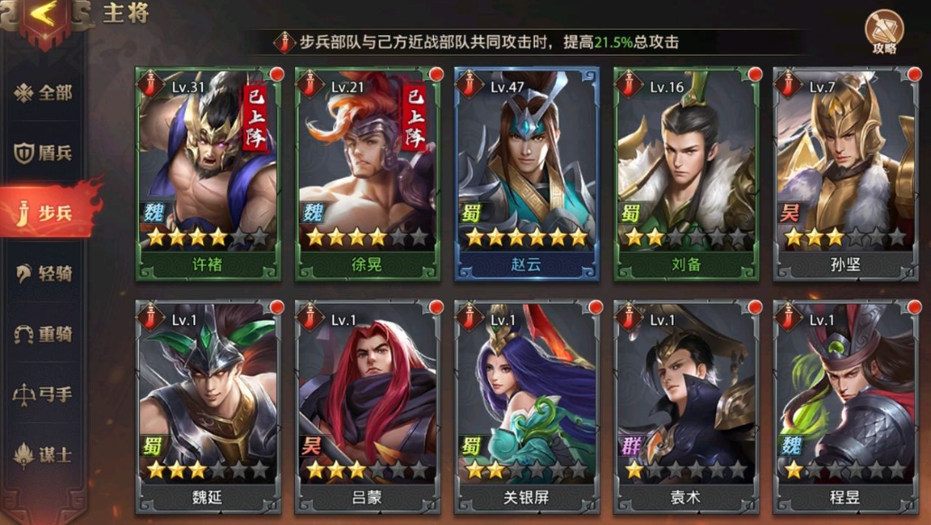 理解兵种的固有特性是决定强化优先级的关键依据。六大基础兵种各有明确的战斗定位与特性,例如盾兵开场能获得基于最大生命值的盾甲值,是优秀的前排壁垒;弓手部队的攻击力会随与目标距离的增加而提升;轻骑在攻击敌方弓手或谋士时能获得极高的暴击率加成。兵种等级的强化并非独立行为,它必须与玩家所选择的武将阵容流派紧密结合。如果玩家的阵容核心输出依赖于弓手,那么优先且集中地强化弓手兵种等级将带来最大的战力收益。这种基于兵种特性与阵容协同的针对性强化,是构建有效战术体系、发挥兵种间克制关系优势的根本。